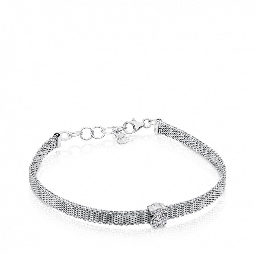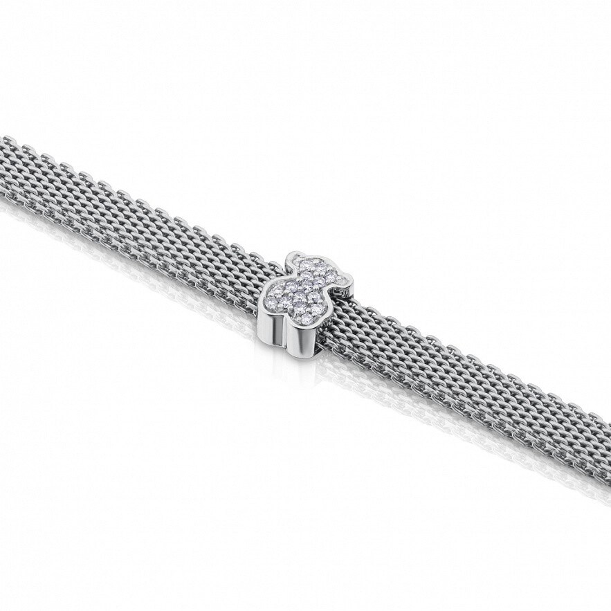 Браслет TOUS Icon Mesh із білого золота 750 проби, сталі та діамантів. Загальна вага вставки: 0,04 ct. Розмір: 6 мм. Довжина: 17,5 см.