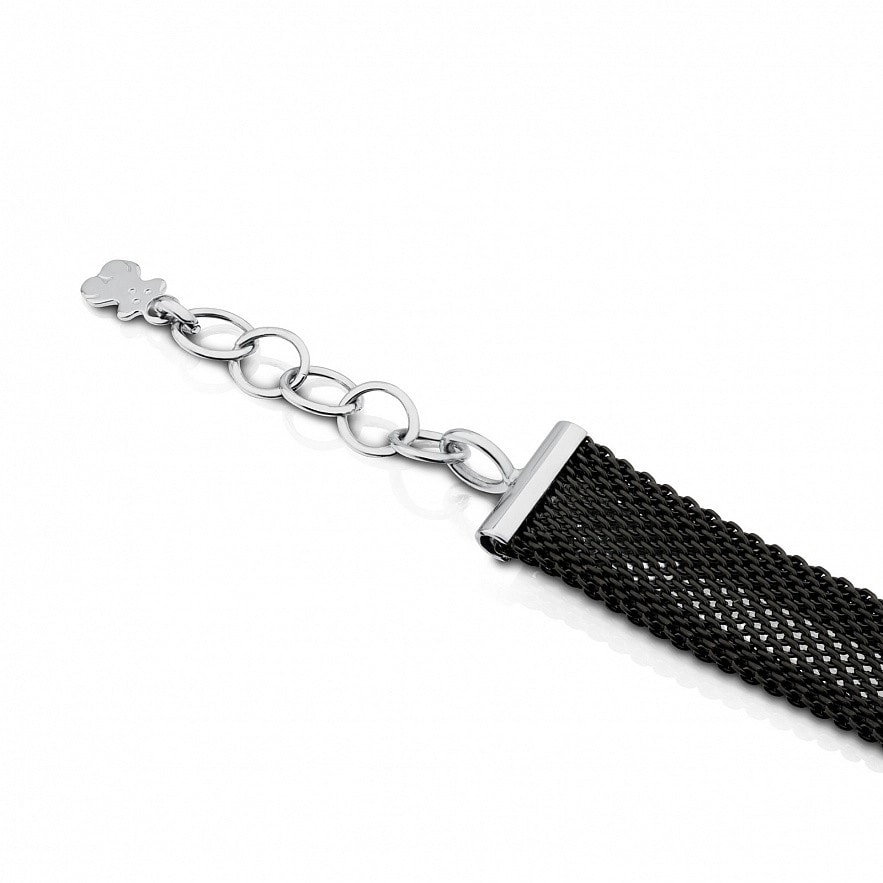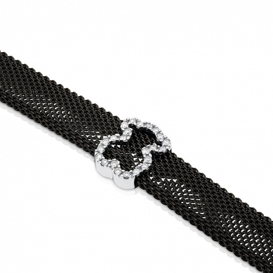 Браслет TOUS Icon Mesh із білого золота 750 проби і сталі з чорним іонним покриттям, та діамантами. Загальна вага: 0,04 ct. Розмір: 8 мм. Довжина: 17,5 см.
