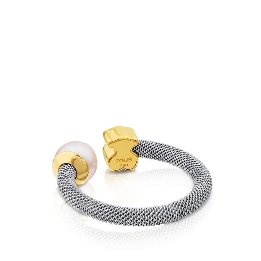 Каблучка TOUS Icon з нержавіючої сталі та 18-каратного жовтого золота з культивованою перлиною розміром 6,5-7 см. Мотив: 0,6 см.