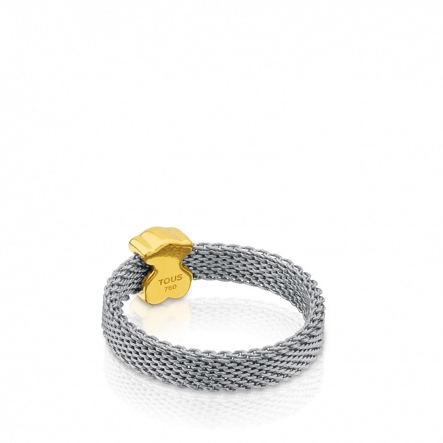 Каблучка TOUS Icon Mesh з жовтого золота 18 kt та сталі. Ширина: 4 мм. Розмір: 6 мм.
