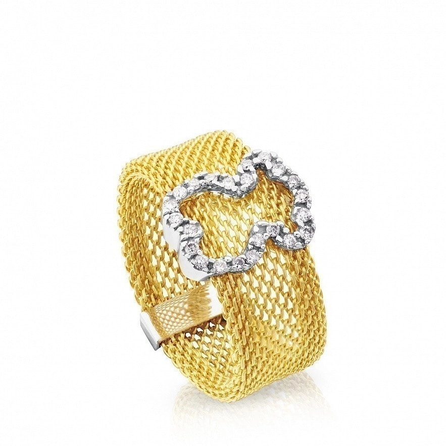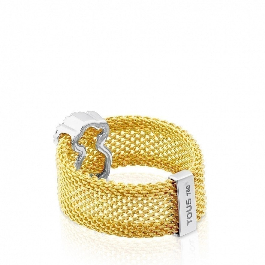 Каблучка TOUS Mesh із жовтого і білого золота (18 kt) з діамантами. Загальна вага в ktах: 0,14 кар. Фігурка: 1,1 см.