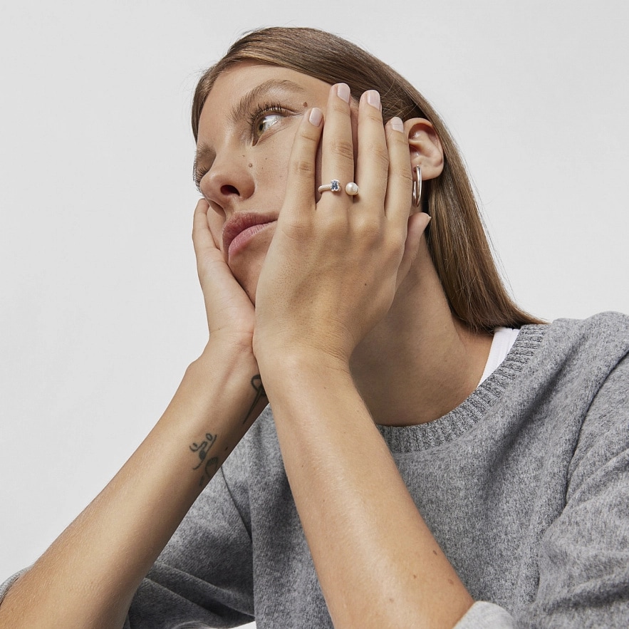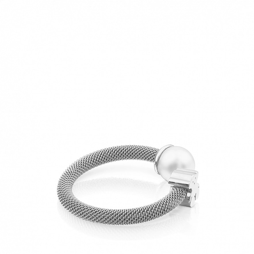 Каблучка TOUS Icon Mesh, зі срібла з перлиною розміром 6,5-7 мм.