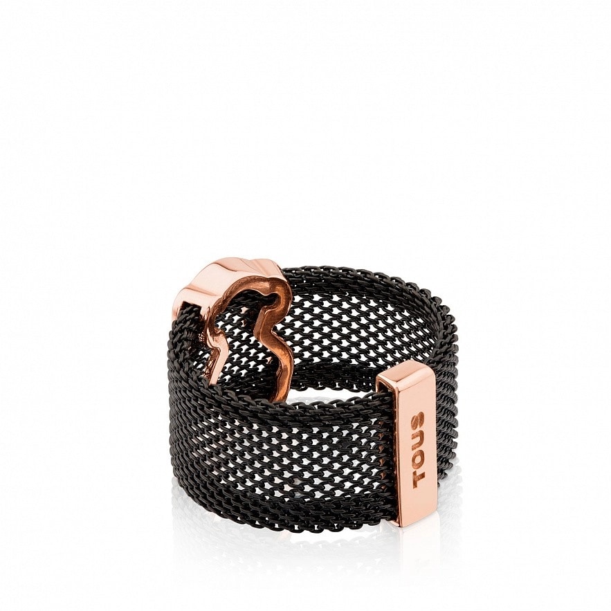 Каблучка TOUS Icon Mesh, зі срібла з покриттям Vermeil та сталі з чорним іонним покриттям. Розмір: 1,35 см х 1,11 см. Vermeil : срібло, покрите шаром рожевого золота 18kt.