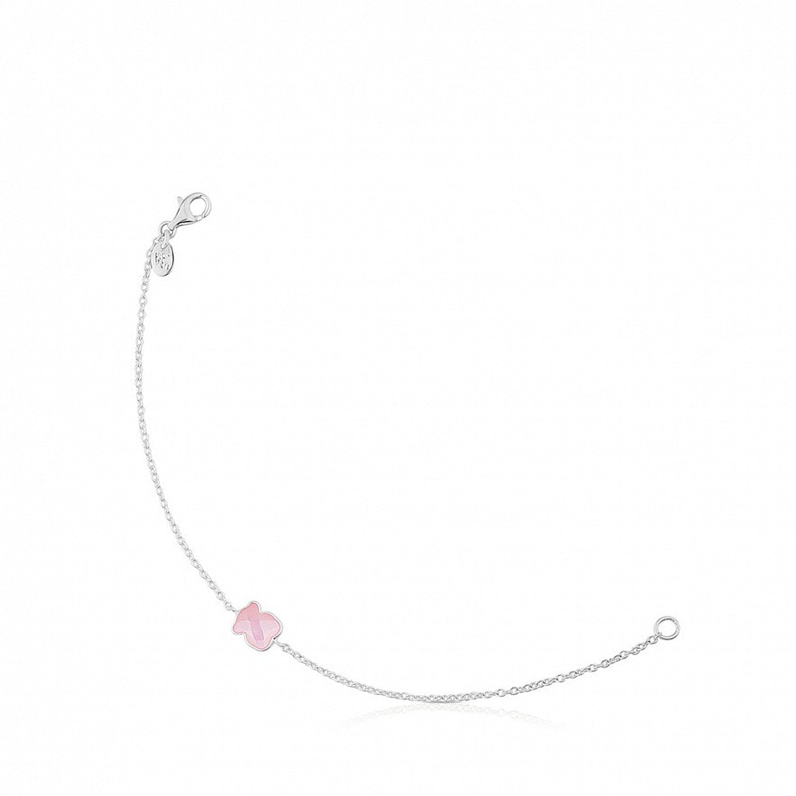 Браслет TOUS New Color, зі срібла 925 проби з рожевим кварцом. Ведмедик: 9 мм. Довжина: 17,5 см.