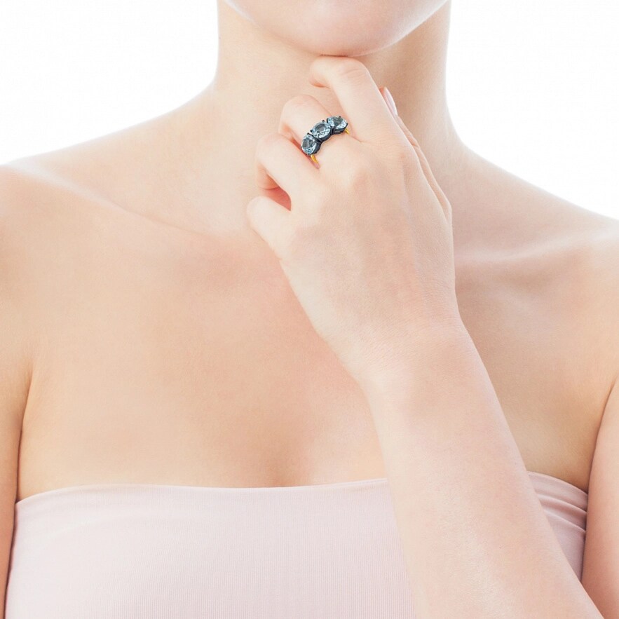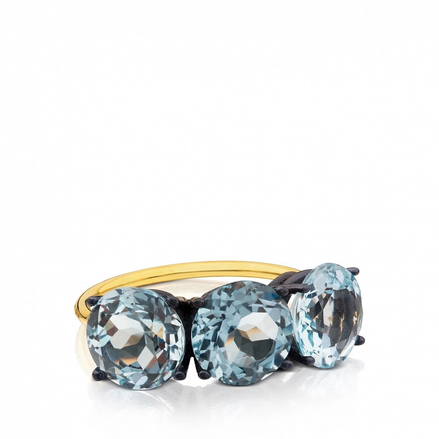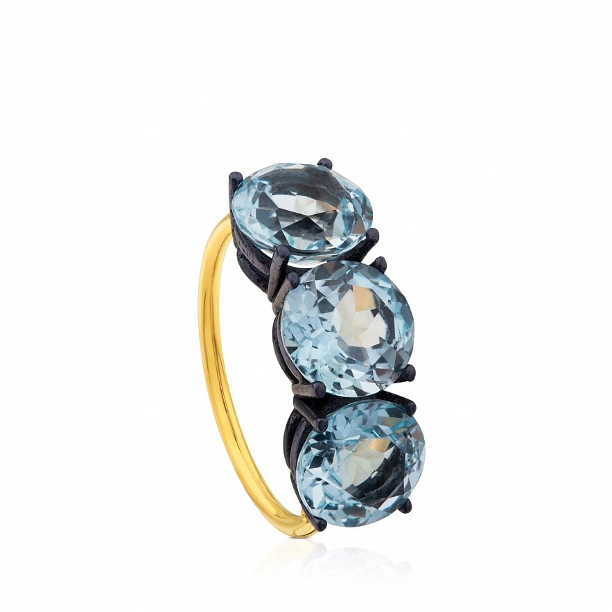 Каблучка TOUS Rosa Oriol Atelier з жовтого золота 18 карат, синій титан, блакитні топази 0,8 см.