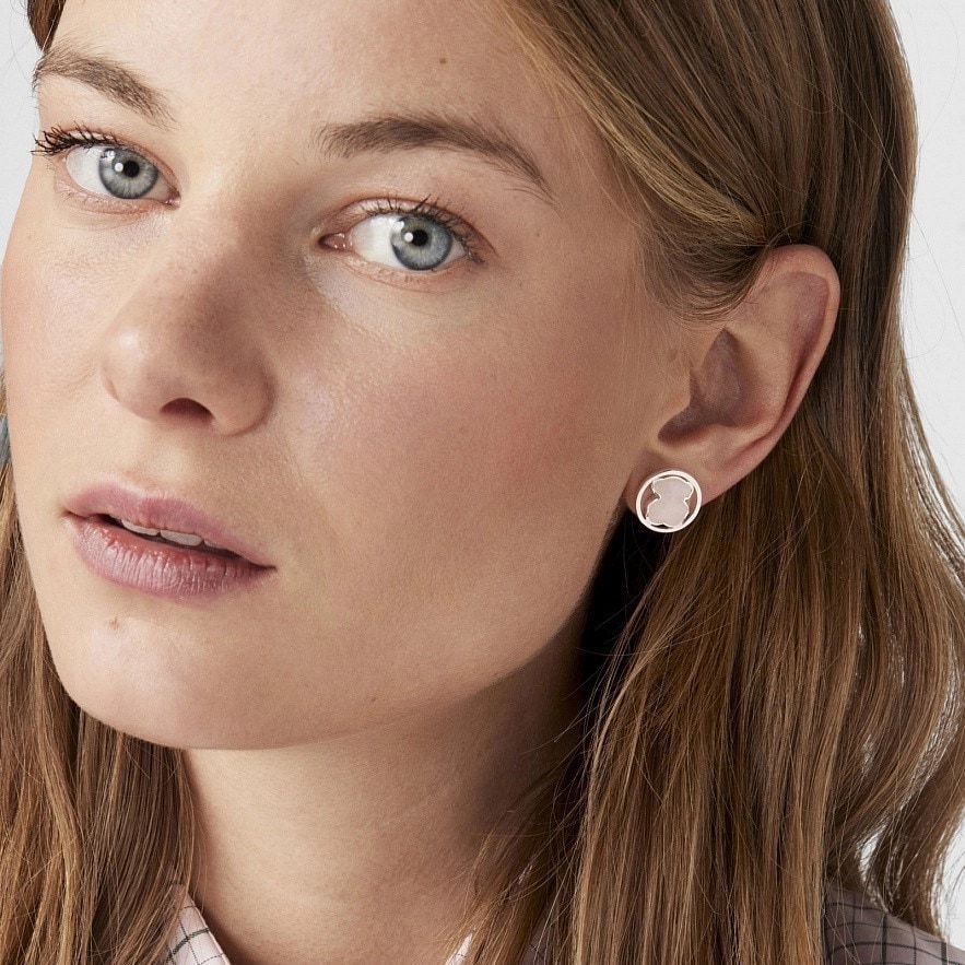Сережки TOUS Camille зі срібла 925 проби та рожевим кварцом. Розмір: 1.4 см.