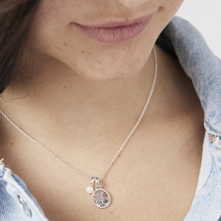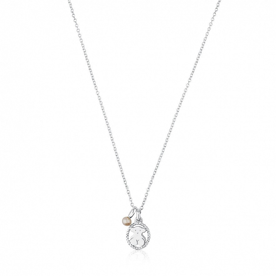 Ланцюг і кулон TOUS Camee із срібла вищої проби з перлинами розміром 0,4 см. Вставка: 1,2 см. Довжина: 45 см.