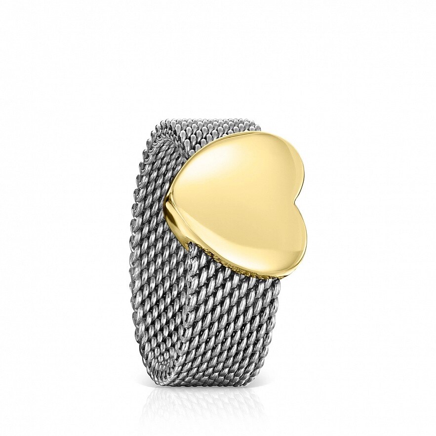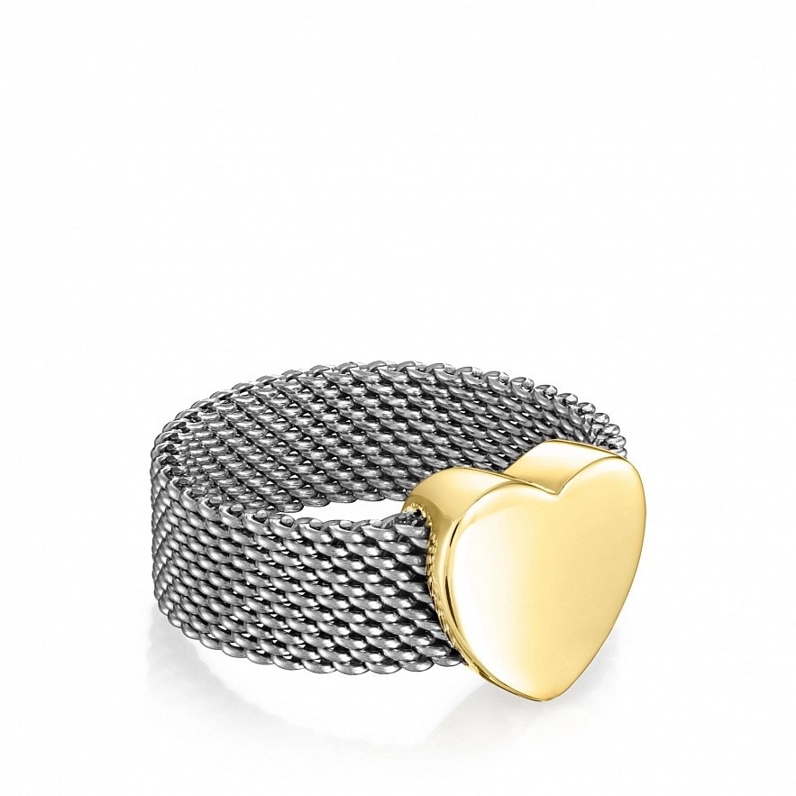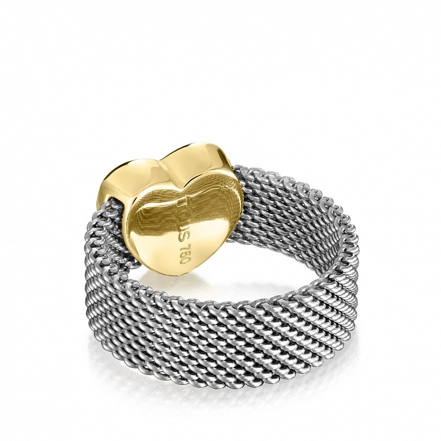 Каблучка TOUS Mesh зі сталі та 18-каратного жовтого золота. Розмір: 1,1 см. Ширина: 0,7 см.