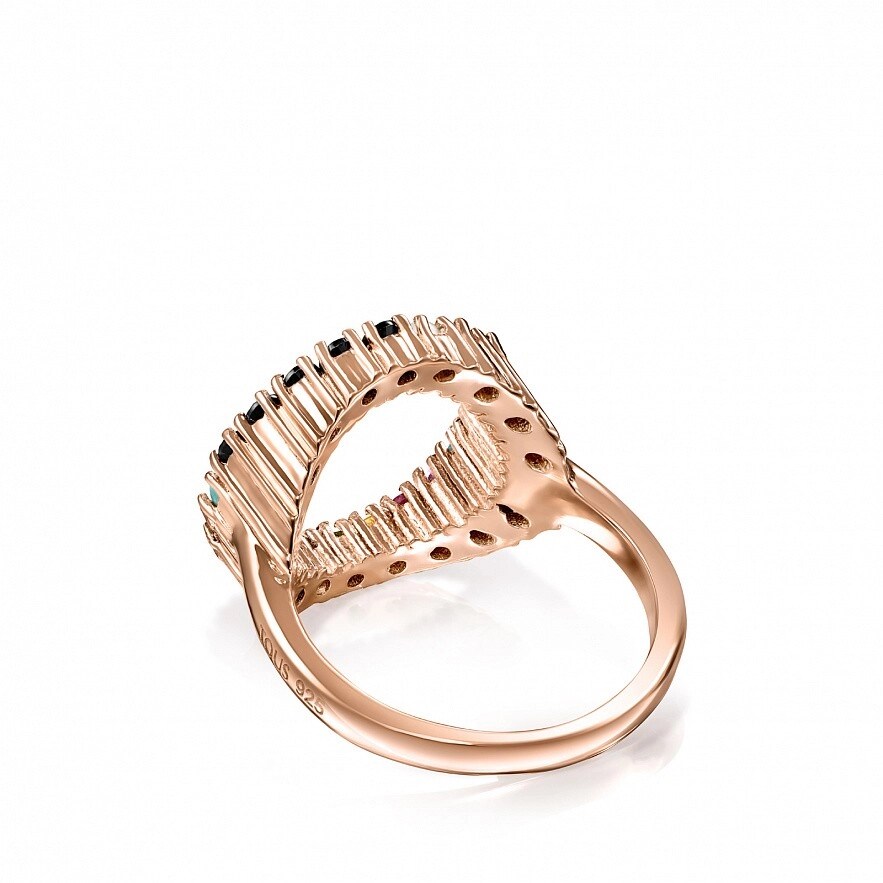 Каблучка TOUS Straight зі срібла 925 проби з рожевим покриттям Vermeil з бірюзою, шпінеллю, перлинами, блакитним топазом, аметистом, рубіном, сапфіром та цаворитом. Розмір диску: 1.6 см. Vermeil : срібло 925 проби з покриттям золота 18kt.