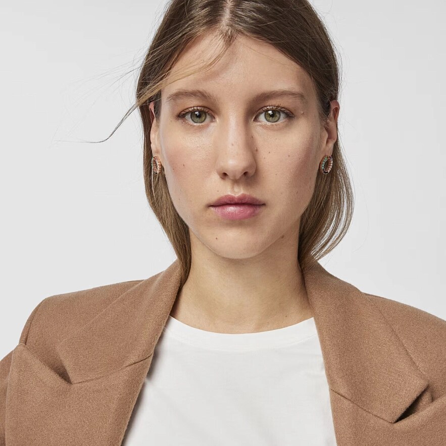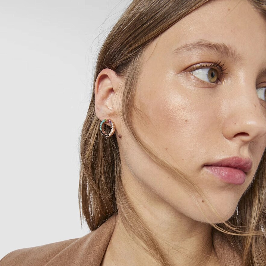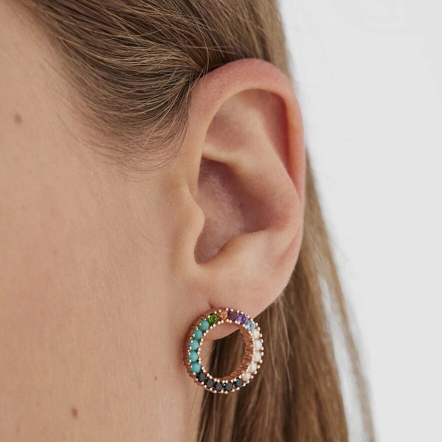Великі сережки з диском TOUS Straight з рожевого Vermeil зі шпінеллю, бірюзою, перлами, помаранчевим сапфіром, рубіном, цаворітом, аметистом і синім топазом. З фіксуючим штифтом. Розмір: 1,6 см. (Рожевий Vermeil : срібло вищої проби, покрите рожевим золотом 18 каратів).