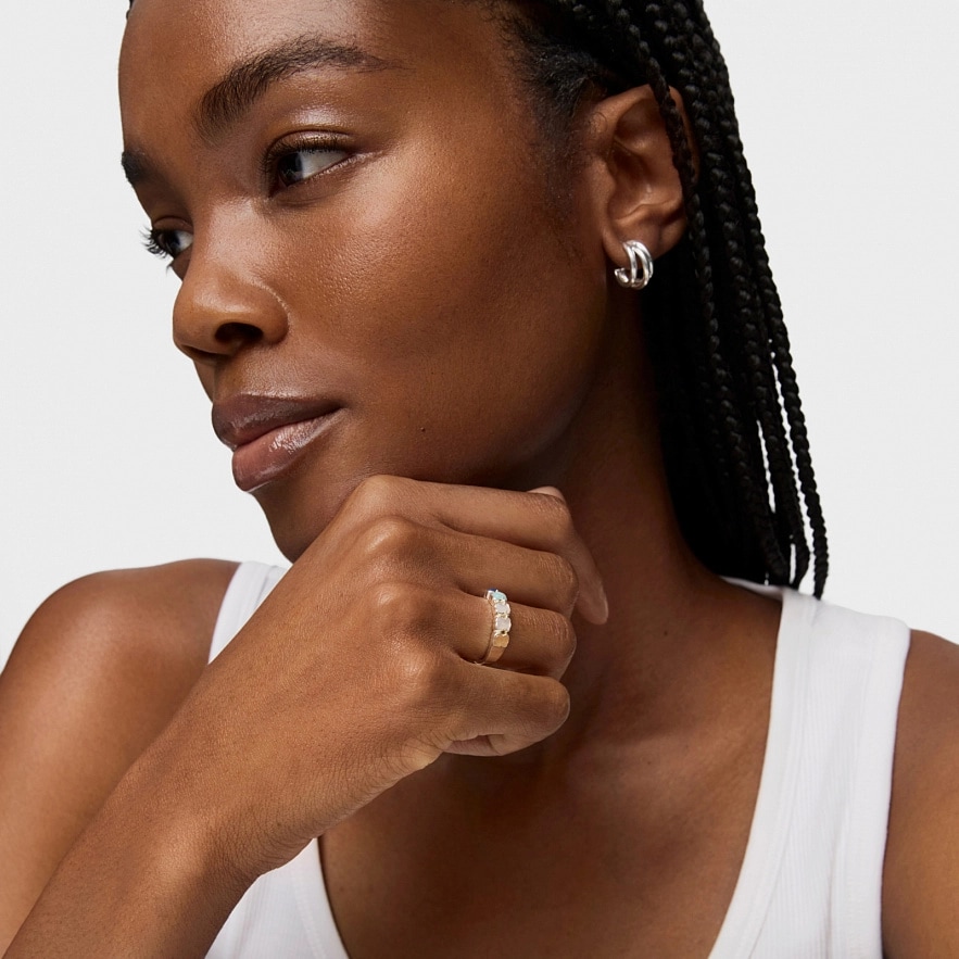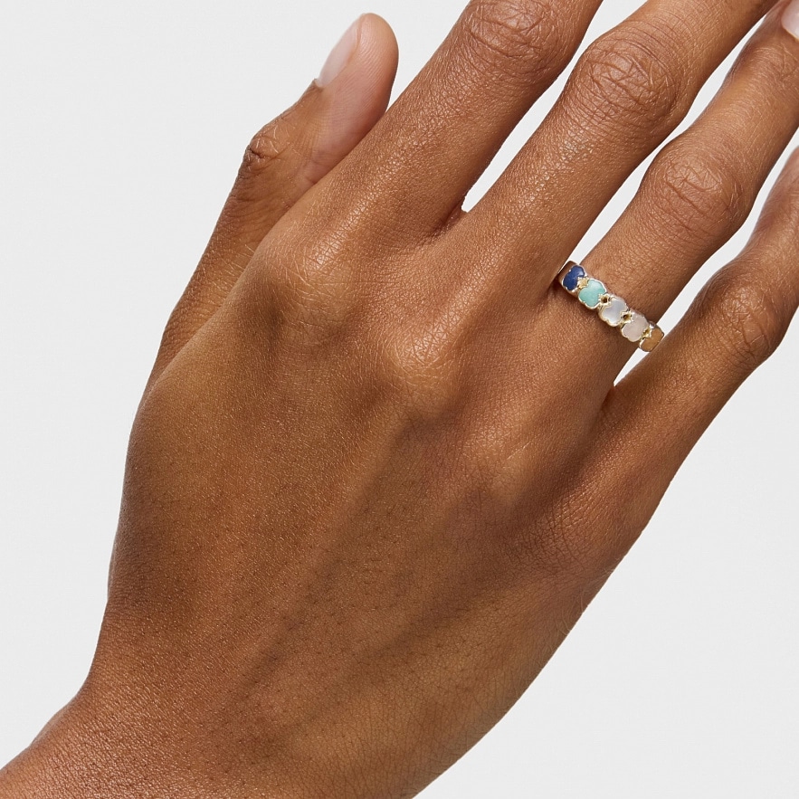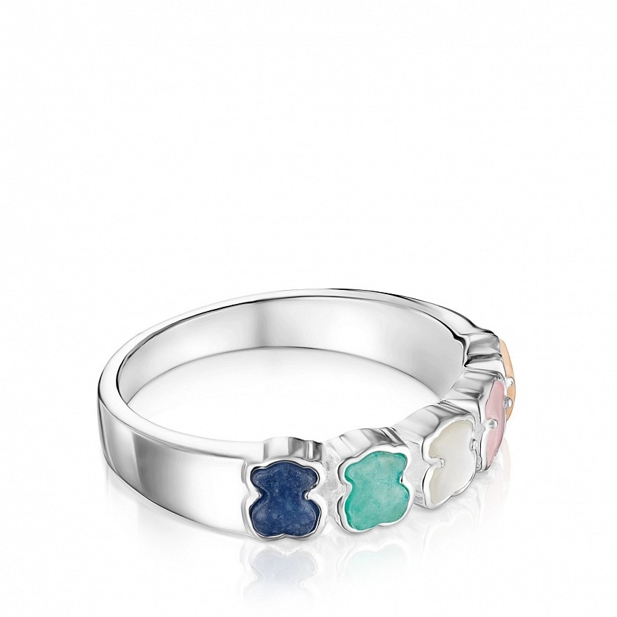 Каблучка TOUS Mini Color зі срібла вищої проби з кварцом з дюмортьєрітом, амазонітом, перламутром, рожевим і помаранчевим кварцитом. Розмір: 0,5 см.