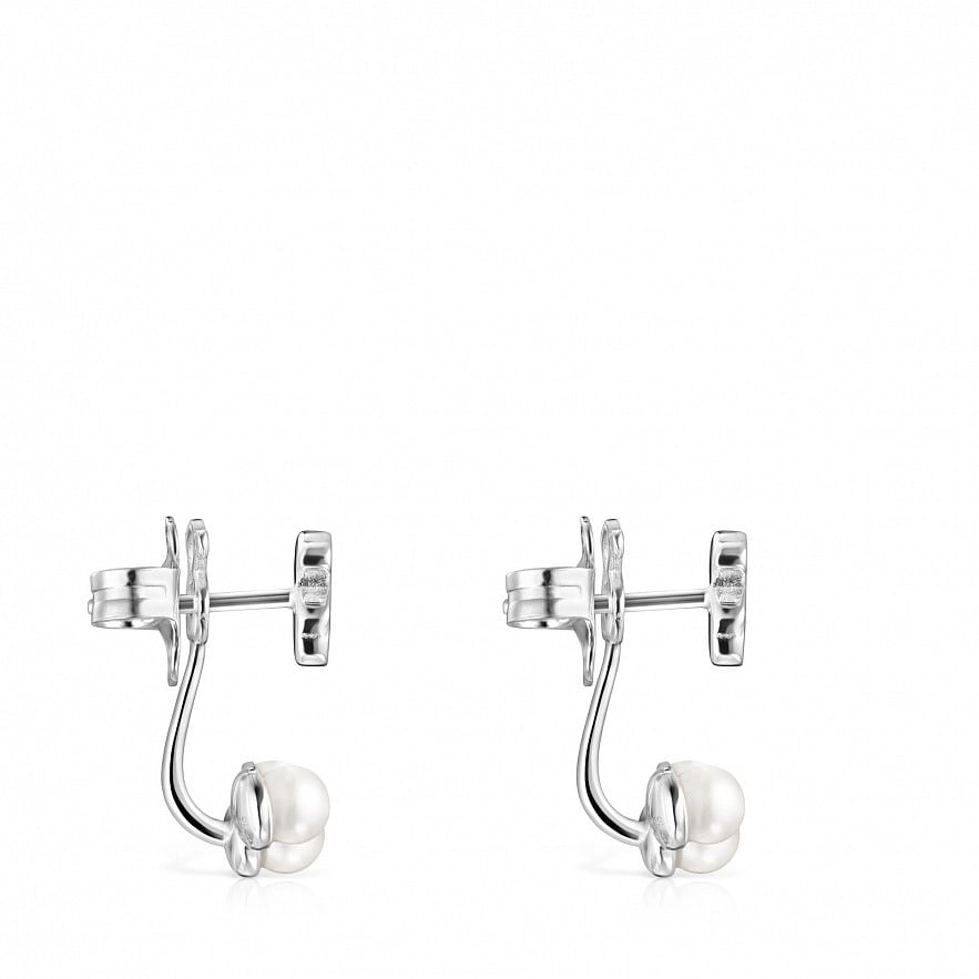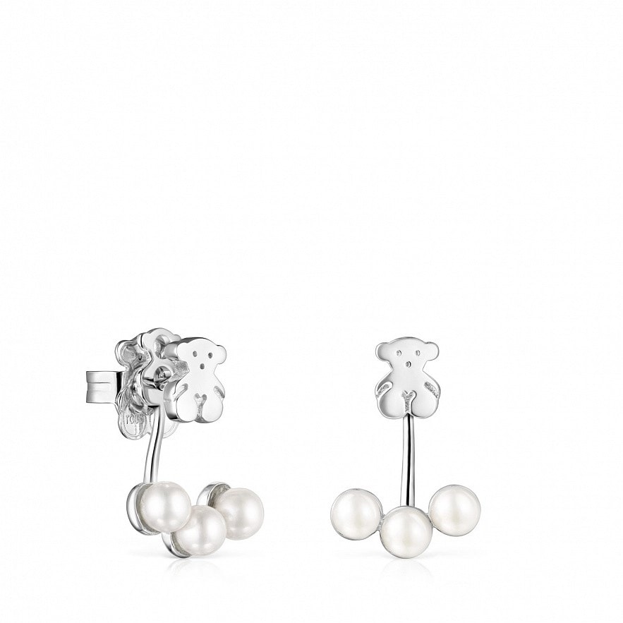 Сережки TOUS Nocturne зі срібла з трьома перлинами Ø4-4,5 мм. З фіксованим штифтом. Розмір ведмедика: 0.7 см.