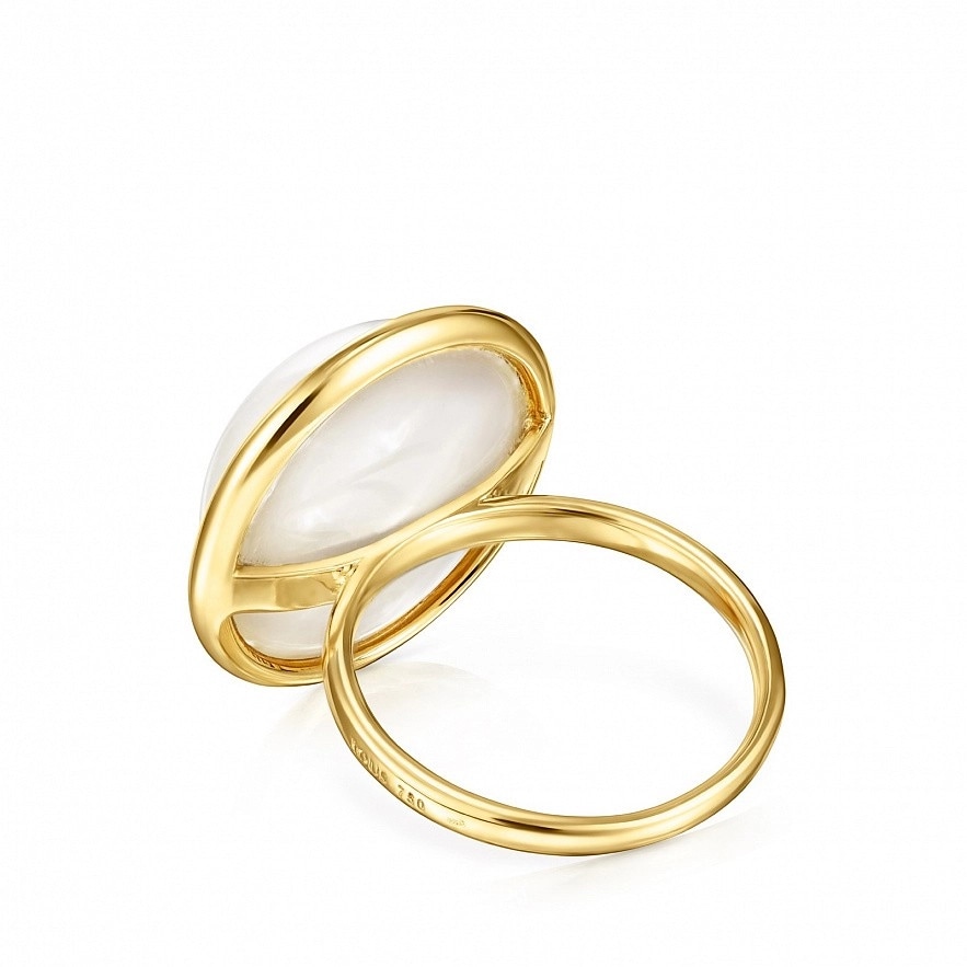 Каблучка TOUS Avalon з жовтого золота 18 карат з перлами. Розмір: 1,3 см.