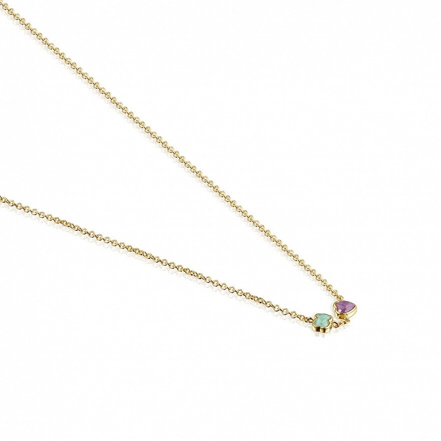 Намисто TOUS Glory з Vermeil з амазонітом і аметистом. Розмір: 0,4 см. Довжина: 45 см. Vermeil : срібло, покрите шаром жовтого золота 18kt.