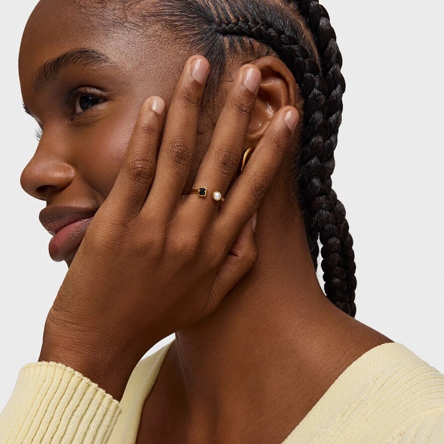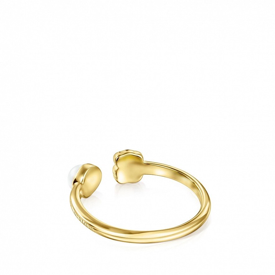 Каблучка TOUS Glory з Vermeil відкрита, з оніксом і перлами. Розмір: 0,4 см. Vermeil : срібло, покрите жовтим золотом 18kt.