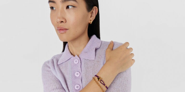 La elección de colores es esencial al acumular pulseras. Te recomendamos que elijas un color base o una gama cromática para tus pulseras. Puede ser el mismo color que predomine en tu ropa o uno que contraste de forma armoniosa. Experimenta con looks clásicos como blanco y negro, o atrévete a mezclar tonos metálicos. Prueba combinando pulseras de plata con pulseras de oro para un toque de glamour cuando lleves un vestido negro elegante para una ocasión especial. Para ocasiones más informales o un look diario, combina pulseras de colores más fuertes y llamativos ¿Qué te parece mezclar azul, rosa y morado? Si prefieres algo más discreto, decídete por un color y juega con diferentes tonalidades del mismo.
